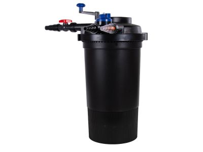 De AquaForte GPF-15000 is een krachtig drukfilter dat helpt om het water in je vijver helder te houden. Het systeem combineert meerdere filterlagen en een UV-C lamp van 18 watt, waarmee je zowel vuildeeltjes als zweefalgen effectief verwijdert. Dit filter is geschikt voor vijvers tot 30.000 liter zonder vissen, of kleinere vijvers met vis (geen koi). Dankzij de mogelijkheid om het systeem deels in te graven kun je het netjes wegwerken langs de rand van je vijver.