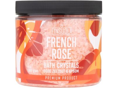 Het Finsuola badzout met French Rose geur is een luxe toevoeging aan je badritueel. Deze verpakking bevat één kilo badzout, wat voldoende is voor ongeveer tien baden. Het zout bestaat uit een verzorgende mix van Dode Zeezout en Epsom zout en is verrijkt met een zachte rozengeur.
