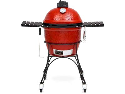 Het 'Divide and Conquer' systeem maakt deze kamado bijzonder flexibel. Dit systeem bestaat uit een grillrooster van 46 cm in twee delen die je op verschillende hoogtes kunt plaatsen. Zo creëer je eenvoudig twee temperatuurzones tegelijk, ideaal voor het bereiden van verschillende gerechten. De barbecue staat op een stabiel gietijzeren onderstel met vergrendelbare wieltjes. De inklapbare aluminium zijtafels bieden extra werkruimte. Bovendien wordt de Kamado Joe Classic geleverd met handige accessoires zoals RVS grillroosters, warmte deflectoren, een grilltang en een asschuiver.