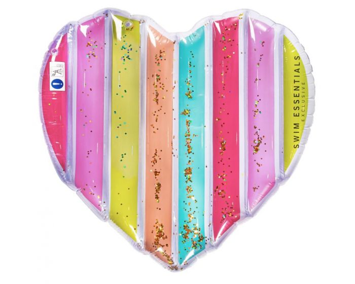 In stijl op het water dobberen in de zomermaanden op dit hartvormige regenboog luchtbed. Het Swim Essentials luchtbed is geschikt voor kinderen en volwassenen vanaf 6 jaar met een maximaal gewicht tot 80 kg. De variërende kleuren en glitters geven het regenboogwater luchtbed net dat beetje extra uitstraling om te stralen deze zomer!