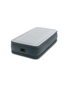 - Ingebouwde pomp: Vraag jezelf af of je een luchtbed met ingebouwde pomp nodig hebt. Modellen zoals het 1 persoons Intex luchtbed met ingebouwde pomp zijn voorzien van een elektrische pomp, wat zorgt voor snel en moeiteloos opblazen. Dit is vooral handig als je vaak reist of kampeert, omdat het niet alleen tijd bespaart, maar ook het gebruiksgemak aanzienlijk vergroot.