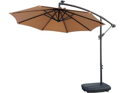 De 24 ingebouwde LED-lampjes geven warm licht boven de spa. Ze laden op via het zonnepaneel, maar de oplaadbare batterij zorgt ook ’s avonds voor verlichting. Vul de voet met zand of water voor extra stabiliteit. Zo geniet je comfortabel én veilig van je spa, zowel overdag als 's avonds.