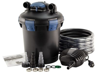 De Oase Biopress 6000 is een complete drukfilterset voor vijvers tot 6000 liter. Het filtersysteem combineert mechanische, biologische en UV-C filtering, wat zorgt voor een stabiel en helder vijvermilieu. Dankzij de gebruiksvriendelijke opzet en plug-and-play installatie is deze set ideaal voor wie snel en zonder gedoe aan de slag wil. De UV-C lamp van 9 watt draagt bij aan het verminderen van zweefalgen en ziektekiemen.