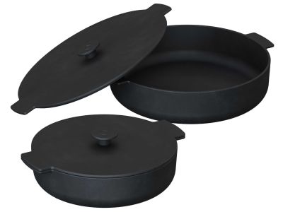 De set bevat een pan met een diameter van 21 cm (1,3 liter) en een grotere pan van 26 cm (2,2 liter). Dit geeft je de flexibiliteit om zowel bijgerechten en sauzen als complete hoofdgerechten te bereiden. De pannen zijn universeel inzetbaar op bijvoorbeeld een kamado, vuurschaal of barbecue. Let op, de pannen worden extreem heet. Het gebruik van hittebestendige handschoenen is noodzakelijk, deze worden niet meegeleverd.