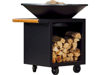 De OFYR Classic Storage Black 100 Pro is een veelzijdig kooktoestel voor buiten dat de functie van een vuurschaal combineert met een grote bakplaat. Dit model is ontworpen voor gezellige momenten waarop je samen met vrienden of familie buiten kookt. De basis van het toestel is vierkant en biedt praktische opbergruimte voor je haardhout. De brede, platte rand rondom de vuurschaal fungeert als kookoppervlak, waarop je diverse gerechten kunt bereiden.