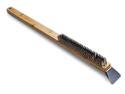 De borstel is gemaakt van duurzame materialen die zorgen voor een effectieve reiniging. Zowel de borstel als de schraper zijn vervaardigd uit roestvrijstaal, wat zorgt voor een robuust geheel. Het comfortabele houten handvat geeft je een goede grip tijdens het schoonmaken van de nog warme steen.