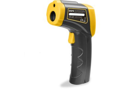 Met de Ooni infraroodthermometer meet je nauwkeurig de temperatuur van je pizzasteen. Door de thermometer op de steen te richten, zie je direct op het scherm hoe heet het oppervlak is. Dit is belangrijk, want zo weet je precies wanneer de ideale baktemperatuur van ongeveer 400°C is bereikt. Een correcte temperatuur is essentieel voor het bakken van een goede pizza met een krokante bodem.