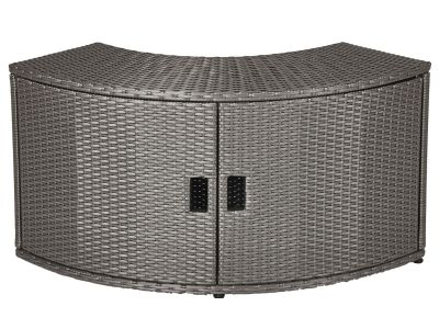 De kast is volledig gesloten, zodat alles netjes uit het zicht kan worden opgeborgen. Dit creëert een opgeruimde sfeer rondom de spa. Door de rotan-look krijgt de kast een warme en luxe uitstraling, die perfect past bij een ontspannen spa-omgeving.