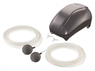 De set wordt compleet geleverd met twee luchtslangen van vijf meter, twee uitstroomstenen, Y-verdelers en zelfs vier reservemembranen. Hierdoor kun je de installatie flexibel uitvoeren en het systeem gemakkelijk onderhouden. Je hebt dus meteen alles in huis wat je nodig hebt om de vijver van voldoende zuurstof te voorzien.