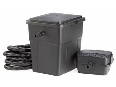 Het filtersysteem maakt gebruik van een doorstroomfilter met filterschuimen en bio-elementen. Hierdoor worden grove vuildeeltjes tegengehouden en worden schadelijke stoffen zoals ammoniak op natuurlijke wijze afgebroken. De ingebouwde 7 watt UV-C lamp helpt zweefalgen en bacteriën in het water te doden.