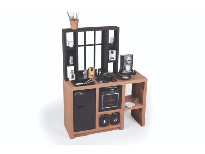 De Smoby Loft speelkeuken heeft een modern, industrieel ontwerp dat goed past in de woonkamer. In tegenstelling tot veel felgekleurde keukentjes heeft dit model een stijlvolle uitstraling. De keuken is gemaakt van stevig kunststof en is geschikt voor kinderen vanaf drie jaar. Met een hoogte van 96,7 cm en een breedte van 74 cm biedt het een ruim speeloppervlak voor jouw kind.