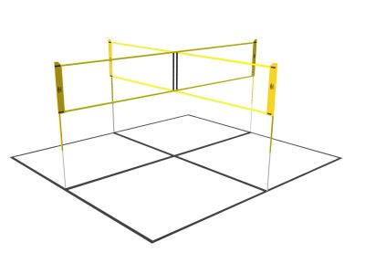 Je kunt dit net op twee manieren gebruiken. Als een traditioneel enkel net met een breedte van 400 cm is het ideaal voor een spel met twee personen. De unieke crossnet opstelling maakt het mogelijk om het veld in vier vakken te verdelen, perfect voor een wedstrijd met vier spelers. Het net heeft een vaste hoogte van 168 cm, wat goed is om te weten voor je begint.