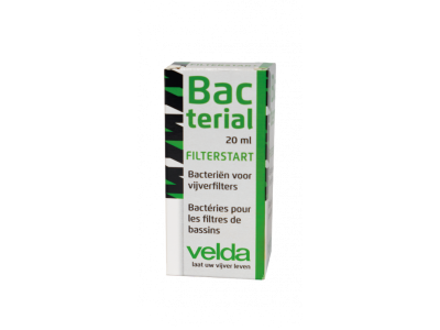 Met de Velda Bacterial Filterstart geef je het biologische evenwicht in je vijver een vliegende start. Deze bacteriën zijn gevriesdroogd en activeren zich zodra ze in contact komen met vijverwater. Binnen 24 uur komen miljarden bacteriën vrij die helpen om organisch afval af te breken. Het resultaat: gezonder water en betere groei van planten.