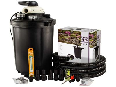 Deze filterset is geschikt voor vijvers tot 20.000 liter. Heb je vissen in de vijver, dan is 10.000 liter het maximum. Bij een koivijver geldt een maximale inhoud van 5000 liter. De combinatie van mechanische én biologische filtering zorgt voor een grondige reiniging van het vijverwater. Dankzij de UV-C lamp van 18 watt worden zweefalgen en schadelijke bacteriën effectief verwijderd.