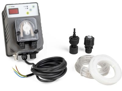 Met de W'eau peristaltische doseerpomp wordt het onderhoud van je zwembadwater een stuk eenvoudiger. Deze pomp automatiseert het toevoegen van vloeibare chemicaliën, zoals pH-minus, pH-plus of vloeibaar chloor. Je hoeft de dosering slechts eenmaal in te stellen, waarna de pomp de juiste hoeveelheid vloeistof op het juiste moment aan het water toevoegt. Zo houd je de waterbalans moeiteloos op peil.