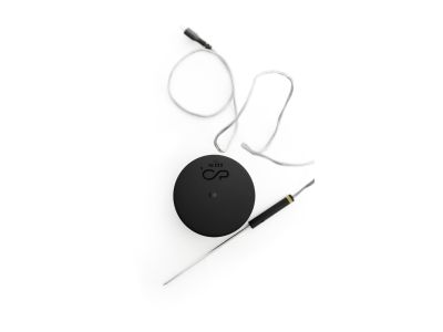 De metalen sensorpen is 70 mm lang en slechts 2,1 mm dik. Door dit dunne ontwerp blijft het gat in het vlees klein, waardoor er weinig vleessappen verloren gaan. De sensor is met een hittebestendige draad verbonden aan de zender die je buiten de oven of barbecue plaatst. In de verpakking vind je één complete thermometer.